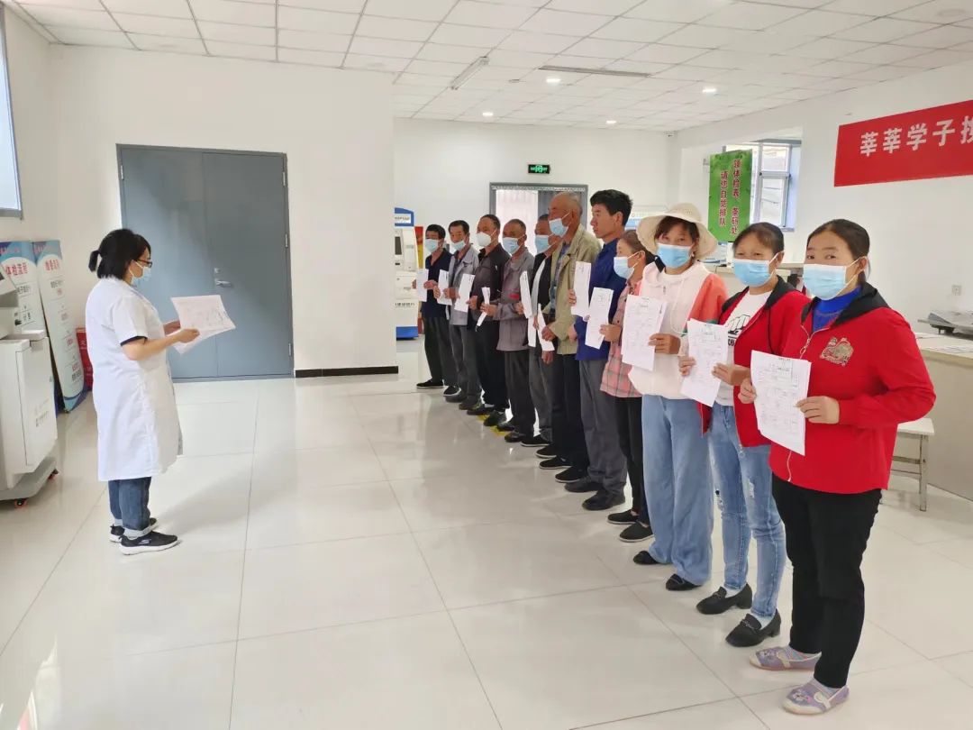 在永清县人民医院中,工友们有序进入体检区域,医护人员耐心为每一位工友进行讲解体检流程及工友们所需了解的问题,向他们普及疾病预防,卫生安全的相关知识,并认真为每一位工友做了包括血压测量、血常规、尿常规、心电图、心脏胸片在内的多项健康检查。