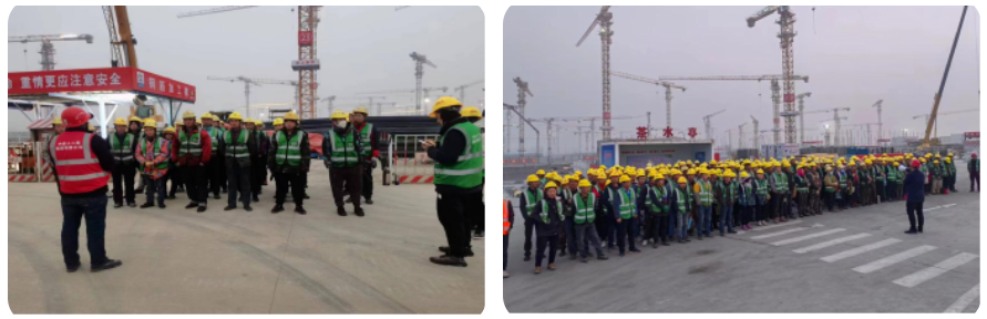 在工期紧、困难多、任务重的情况下,项目部充分意识到“抢工期不能丢安全”为了确保抢工期间的安全生产,项目部组织各班组进行安全教育培训,树立“安全管理、人人有责”的管理理念,加强管理人员和班组的安全意识,坚持每日进行安全早班,夜间施工做到灯光全覆盖,加强对危大工程的安全管控,严格按照施工安全规范要求来管理和作业。